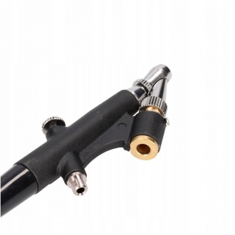 Zastosowana dysza o średnicy 0,5 mm to uniwersalne rozwiązanie, które sprawdza się zarówno przy malowaniu większych powierzchni, jak i przy cieniowaniu czy wypełnianiu detali. Dzięki temu aerograf jest idealnym wyborem dla osób poszukujących narzędzia o szerokim zakresie zastosowań.